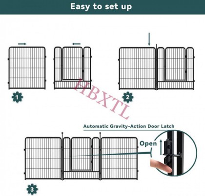 Easy to Assemble: The dog fences for the yard can be combined repeatedly using the poles in just minutes. You only need to put the two fence panels facing out and align the rings, and finally insert the pole into the ring to fix it. It's very flexible-relocate and re-arrange into any shape as needed.