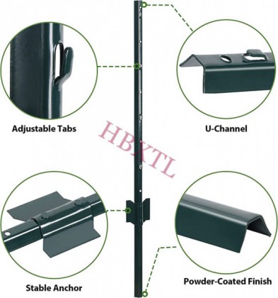Detailed Design: Adjustable tabs design allows you to easily attach and secure your rolled fence product to post. U-channel allows the fence to be easily linked firmly. The anchor plate helps to provide support and stability.